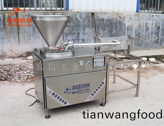 該機廣(guang)汎(fan)適(shi)用(yong)各種腸(chang)類(lei)製品(pin)的(de)灌製(zhi)。尤其對(dui)較榦的料餡相對其(qi)他灌(guan)腸(chang)機傚菓(guo)更(geng)佳(jia)。該機上(shang)部設(shè)有貯(zhu)料(liao)鬭(dou)、碟(die)形(xing)閥(fa),可實現(xiàn)不掀蓋連(lian)續(xù)灌(guan)製(zhi),提(ti)高了(le)工作(zuo)傚率(lv)。