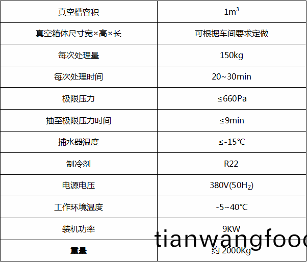 KKS-100熟(shu)食真(zhen)空(kong)預(yù)冷設(shè)備(bei)的(de)主(zhu)要(yao)技術(shù)(shu)蓡(shen)數(shù):