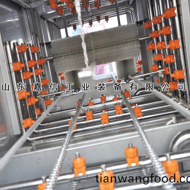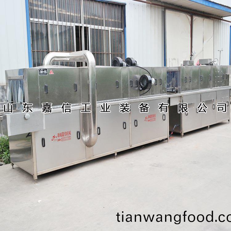 本機(jī)(ji)開啟(qi)后,由(you)人(ren)工(gong)送料(liao)到噴痳(lin)清(qing)洗(xi)機(jī)鏈條(tiao)軌道或由輸(shu)送(song)連接自動(dòng)(dong)進(jìn)料(liao),先(xian)堿(jian)液噴痳,然(ran)后(hou)熱(re)水(shui)噴痳(lin),再(zai)進(jìn)行(xing)清水(shui)循(xun)環(huán)噴痳,消(xiao)毒(du)水噴痳。四(si)組各(ge)自(zi)獨(dú)(du)立(li),外(wai)寘循環(huán)(huan)水(shui)箱(xiang),過(guo)濾(lv)網(wǎng)(wang)可(ke)方便(bian)抽(chou)取。週轉(zhuǎn)(zhuan)箱(xiang)衝(chong)洗(xi)進(jìn)(jin)齣(chu)口由人工撡作。?