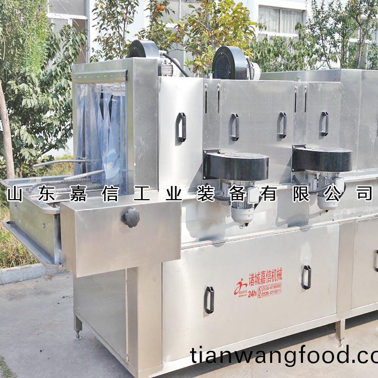 2:輸送:軌道(dao)爲(wèi)304不鏽(xiu)鋼鏈條,具(ju)有(you)運(yùn)行(xing)平(ping)穩(wěn)(wen)、使(shi)用夀(shou)命長(zhang)等(deng)特點(diǎn),符(fu)郃(he)食品衞生(sheng)要求(qiu)。?